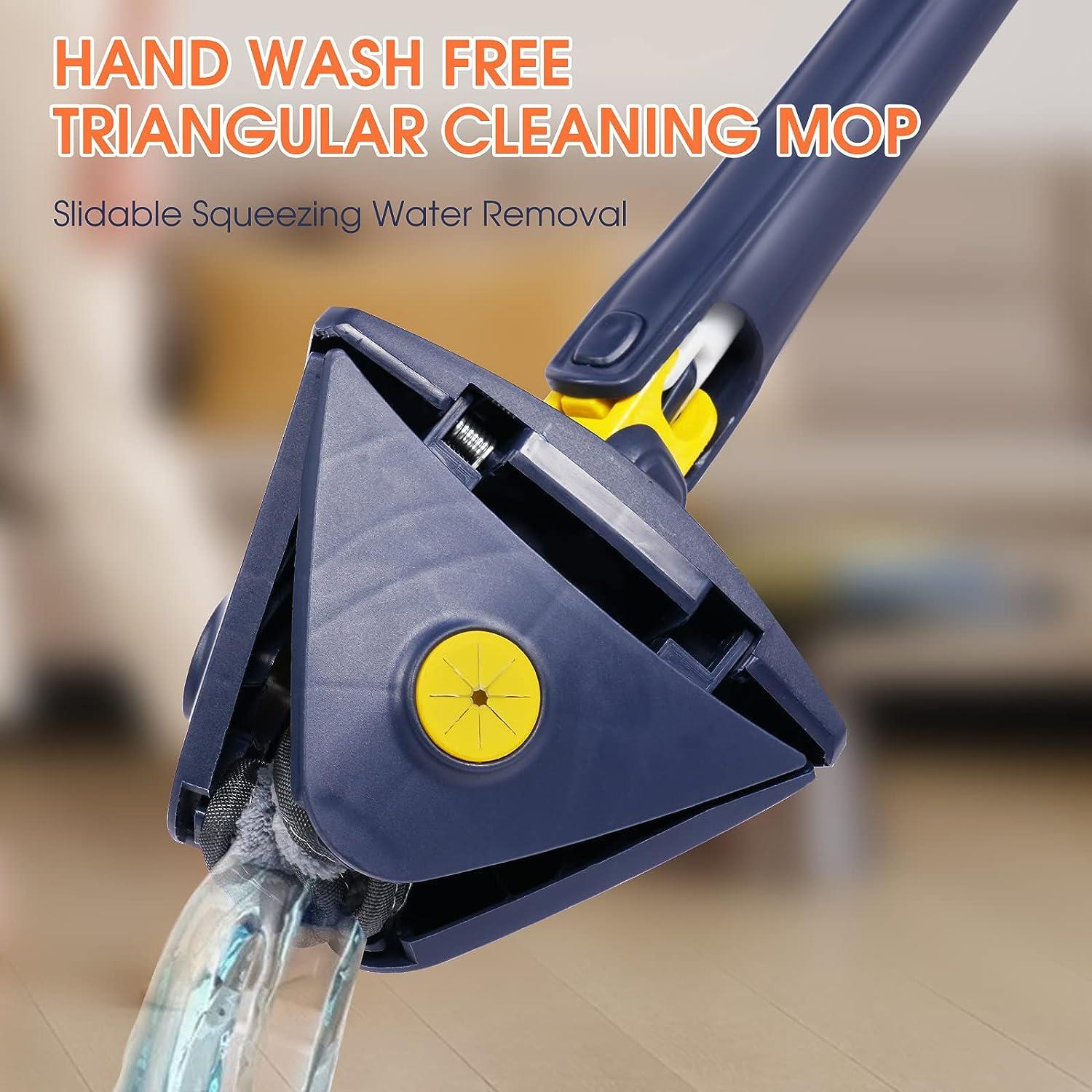 Make Clean Easier The cleaning tray adopts the latest triangular design. The 360° rotating mop head allows you to leave no dust in dead corners, easily solving stubborn dust in the corners of the wall, ceiling, and window. Say no to dangerExtra-long 1.3m pole to easily reach dust locations and help you eliminate dust more only. Premium Material. The mop is equipped with thickened and encrypted microfiber mop cloth, which can quickly absorb water within 5 seconds and has superb adsorption ability, firmly locking in the dust. Protect your handsMimic hand washing cleaning design, integrated push-pull automatic water squeezing function, free your hands